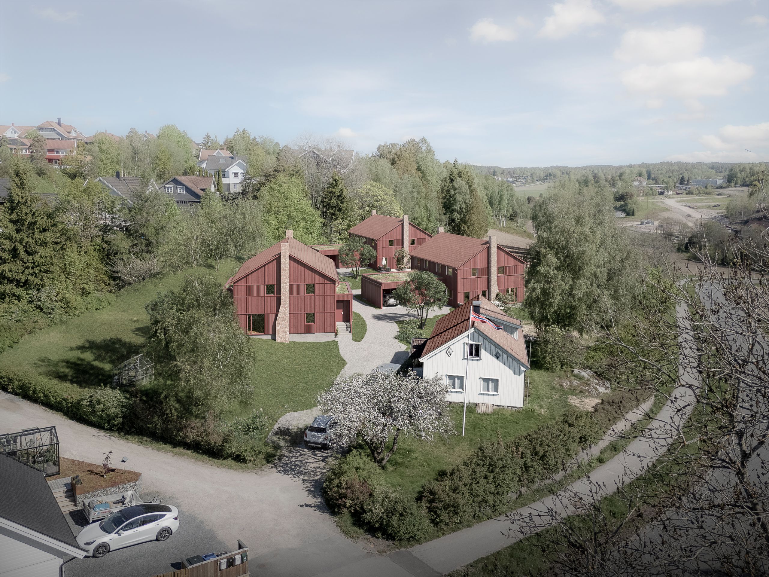 Dette er et prosjekt utenom det vanlige. Boligenes utforming er tidløse med stående rødbeiset kledning. Saltakene er belagt med rød takstein. Kraftige teglsteinspiper strekker seg oppover ytterveggene. Fasadens horisontale og vertikale bjelker gir assosiasjoner til 1600-talls bindingsverk og tilfører utformingen sterke historiske trekk.